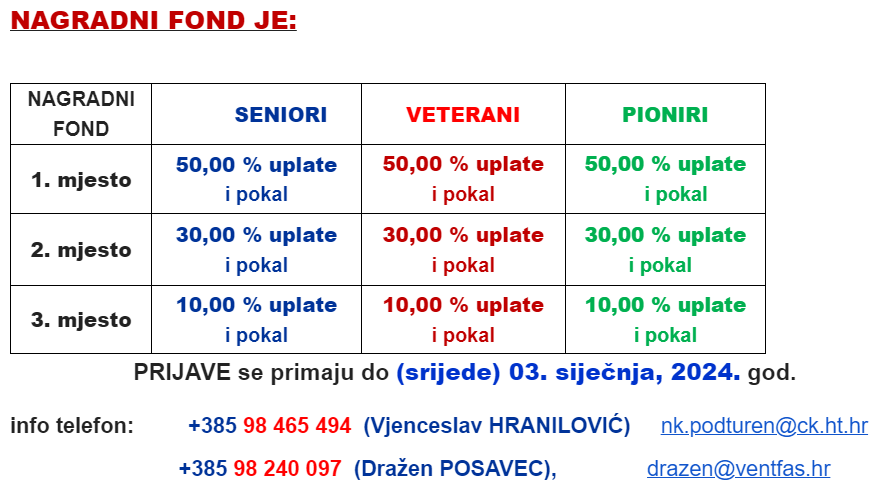 Turnir će se održati u siječnju, počevši od 06.01.2024. tri