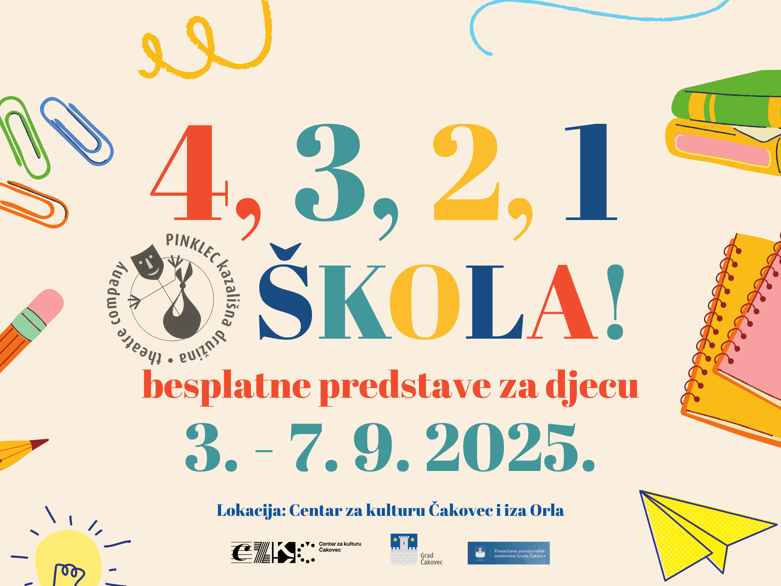4,3,2,1 ŠKOLA – besplatne predstave za djecu 3. – 7. rujna 2025. Kao i svake godine, Kazališna družina Pinklec organizira program pod nazivom “4,3,2,1 škola!” od 4. do 7. rujna […]