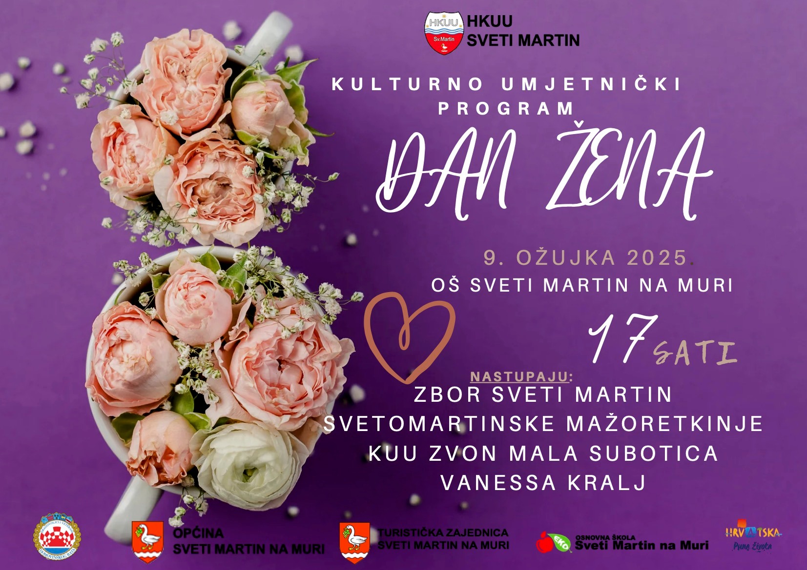 U nedjelju, 9. ožujka 2025. godine, s početkom u 17 sati, održat će se kulturno-umjetnički program u čast ženama, uz bogat glazbeni i umjetnički sadržaj.