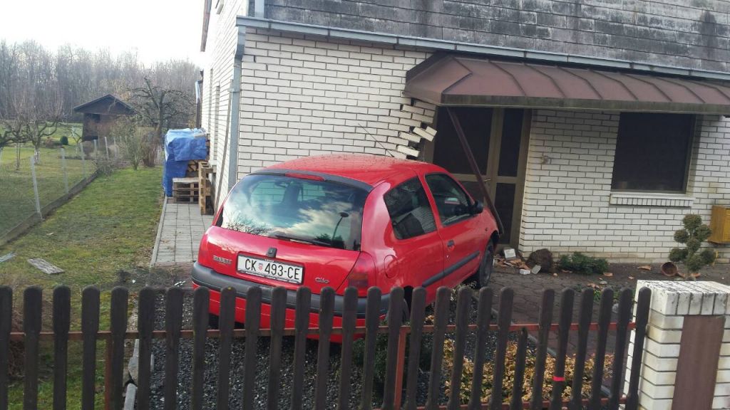U četvrtak ujutro oko 8.15 sati u nesvakidašnjoj prometnoj nesreći obitelj Sklepić iz Šenkovca gotovo je ostala bez ugla svoje obiteljske kuće. Vremešna vozačica (81) svojim se crvenim Renault Cliom čakovečkih registracija zabila u ulazna vrata, tendu i zid kuće u Ulici Augusta Šenoe.