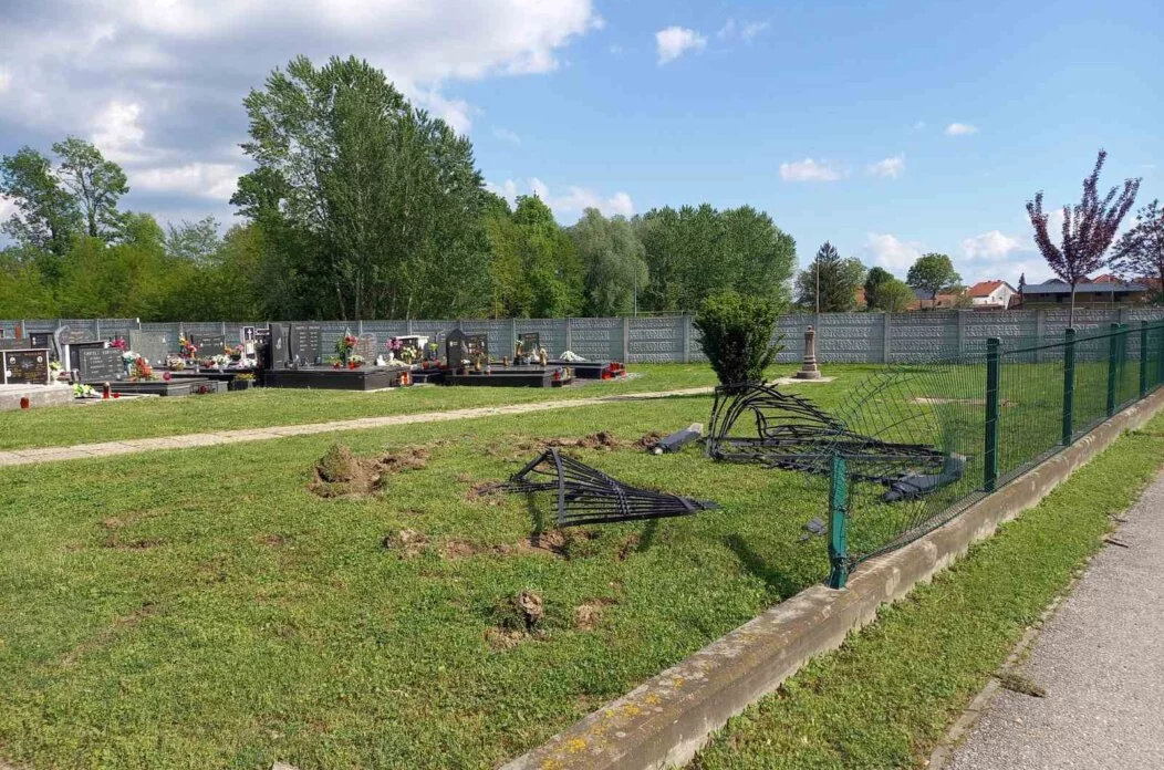 Nakon zanošenja, automobil je skliznuo te je sletio u metalnu ogradu mjesnog groblja kod samog ulaza.