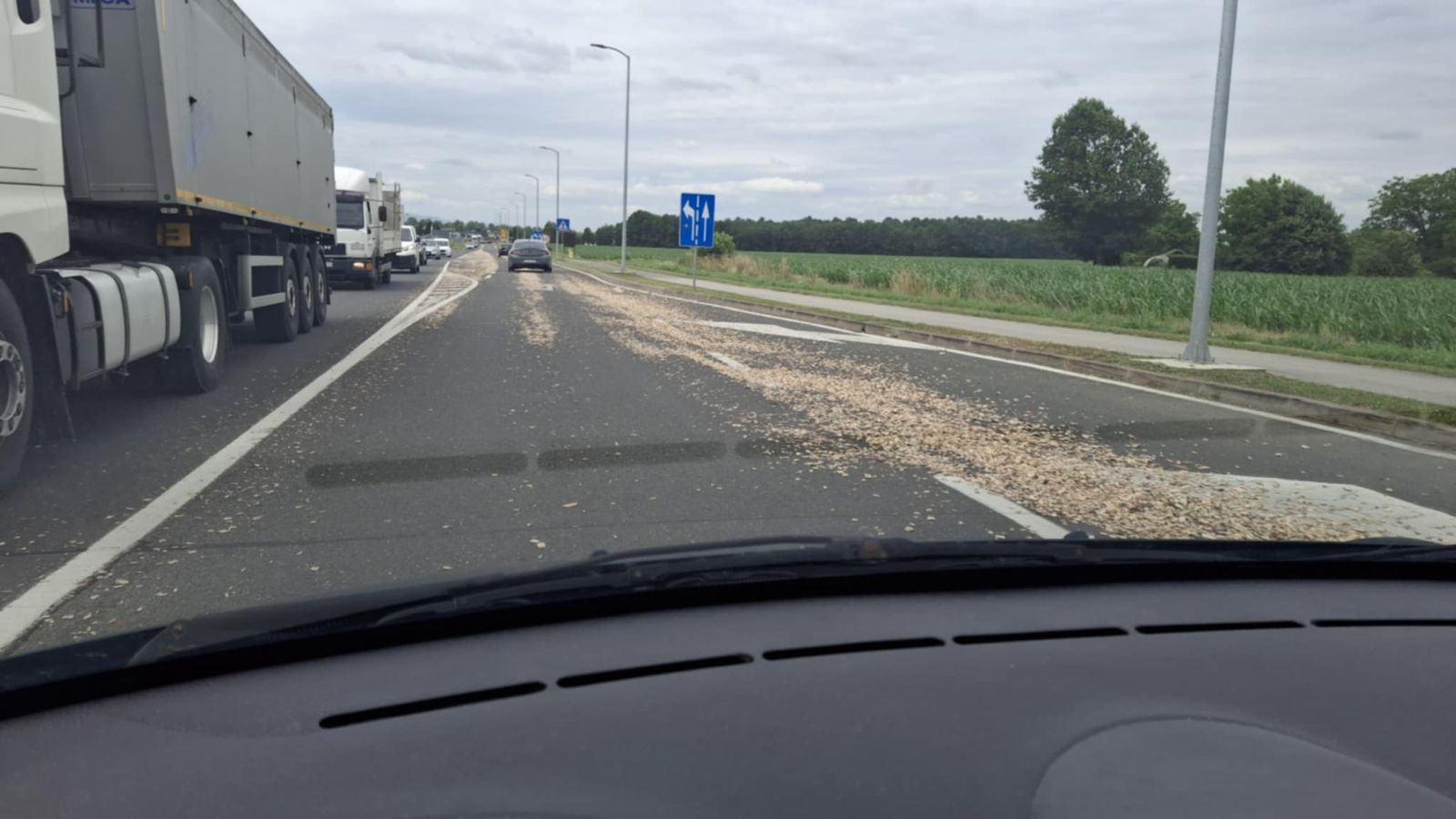 Podsjetimo, slične situacije u prometu mogu imati ozbiljne posljedice, a skliska cesta zbog rasutog materijala lako može uzrokovati padove i sudare. Vozače se stoga poziva da koriste alternativne pravce ili barem usporeno i pažljivo voze tim dijelom grada dok se prometnica ne očisti.