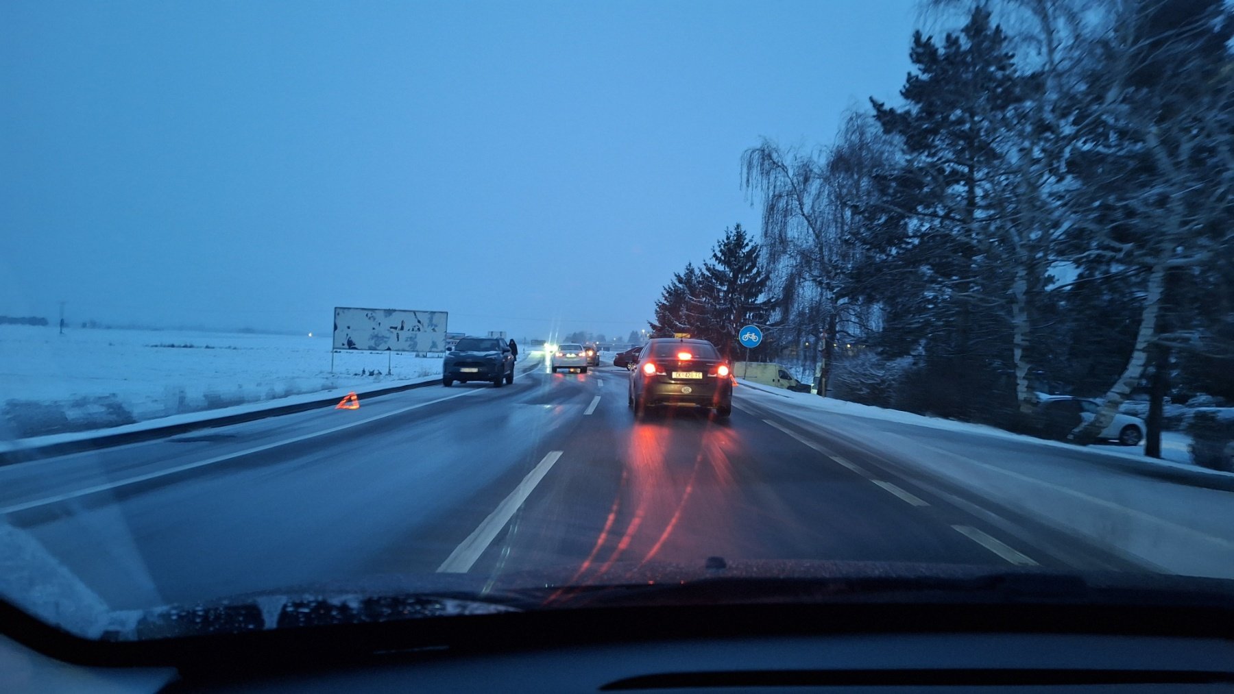 Promet se odvija otežano, a vozačima se savjetuje da prilagode brzinu uvjetima na cesti, povećaju razmak između vozila te, ako je moguće, koriste alternativne pravce.