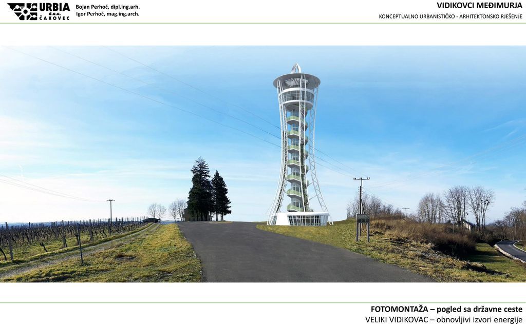 Čakovečki arhitekti Bojan i Igor Perhoč predložili su izgled budućeg vidikovca koji bi se mogao postaviti u gornjem Međimurju kao nova turistička atrakcija i parirati onom u Lendavi, u susjednoj Sloveniji, visokom pedesetak metra, s kojeg se vide četiri države, a već ga nazivaju “slovenskim Eiffelom”.