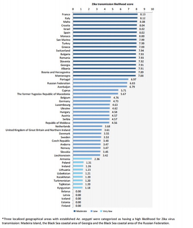 Španjolska, Italija, Grčka, Turska te dijelovi Rusije oko Krasnodara najizglednija su područja za širenje virusa u periodu od lipnja do kraja kolovoza. Osim toga, povišene temperature zahvatiti će i južnu Europu, zbog čega će privući i velik broj turista koji su zaraženi zika virusom.