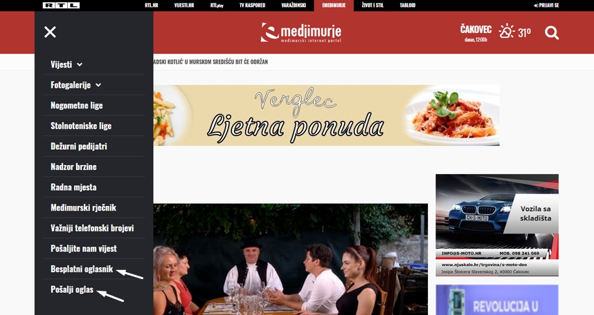 oglase (do oglasnika se može i putem bannera koji se nalazi na
