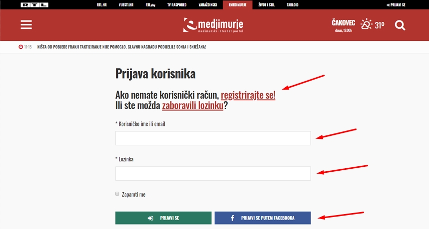 kliknite na ‘registrirajte se!’, a ako jeste prijavite se sa