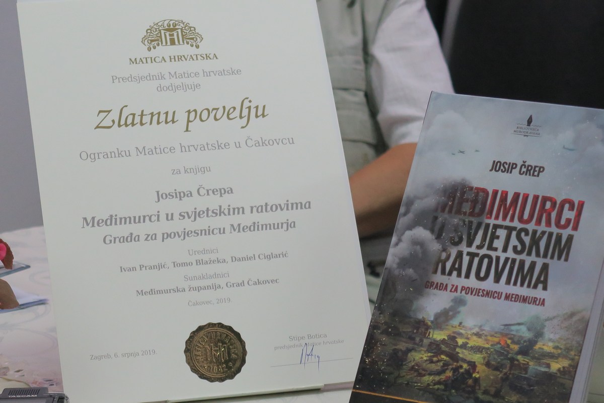 Veliko priznanje stiglo je ovih dana Ogranku Matice hrvatske u Čakovcu. Zlatna povelja Matice hrvatske dodijeljena je za knjigu Josipa Črepa “Međimurci u svjetskim ratovima” koja je predstavljena u travnju ove godine.