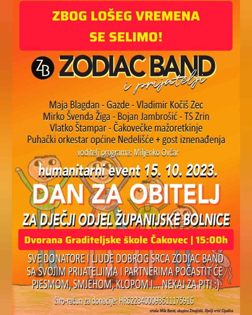 Obavještavamo vas da se cjelokupni događaj 'Dan za obitelj' s Trga republike seli u dvoranu Graditeljske škole Čakovec
