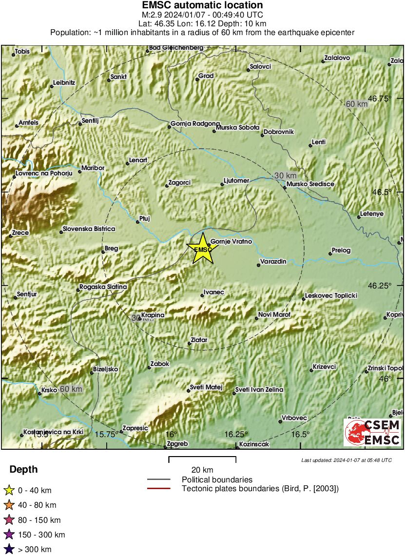 Prema informacijama EMSC-a, potres je bio magnitude 2,6, a na