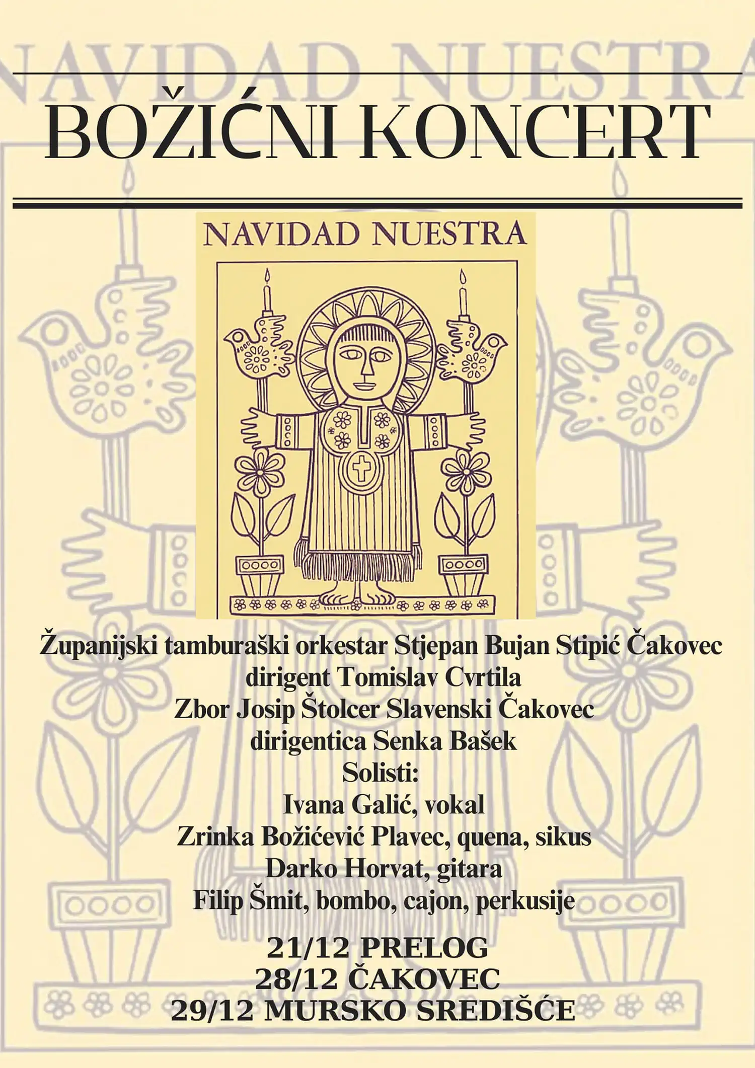 Koncerti su inspirirani programom “Navidad Nuestra”, glazbenim putovanjem kroz latinoameričke božićne melodije, obogaćene tamburaškim zvucima i vokalnom izvedbom.