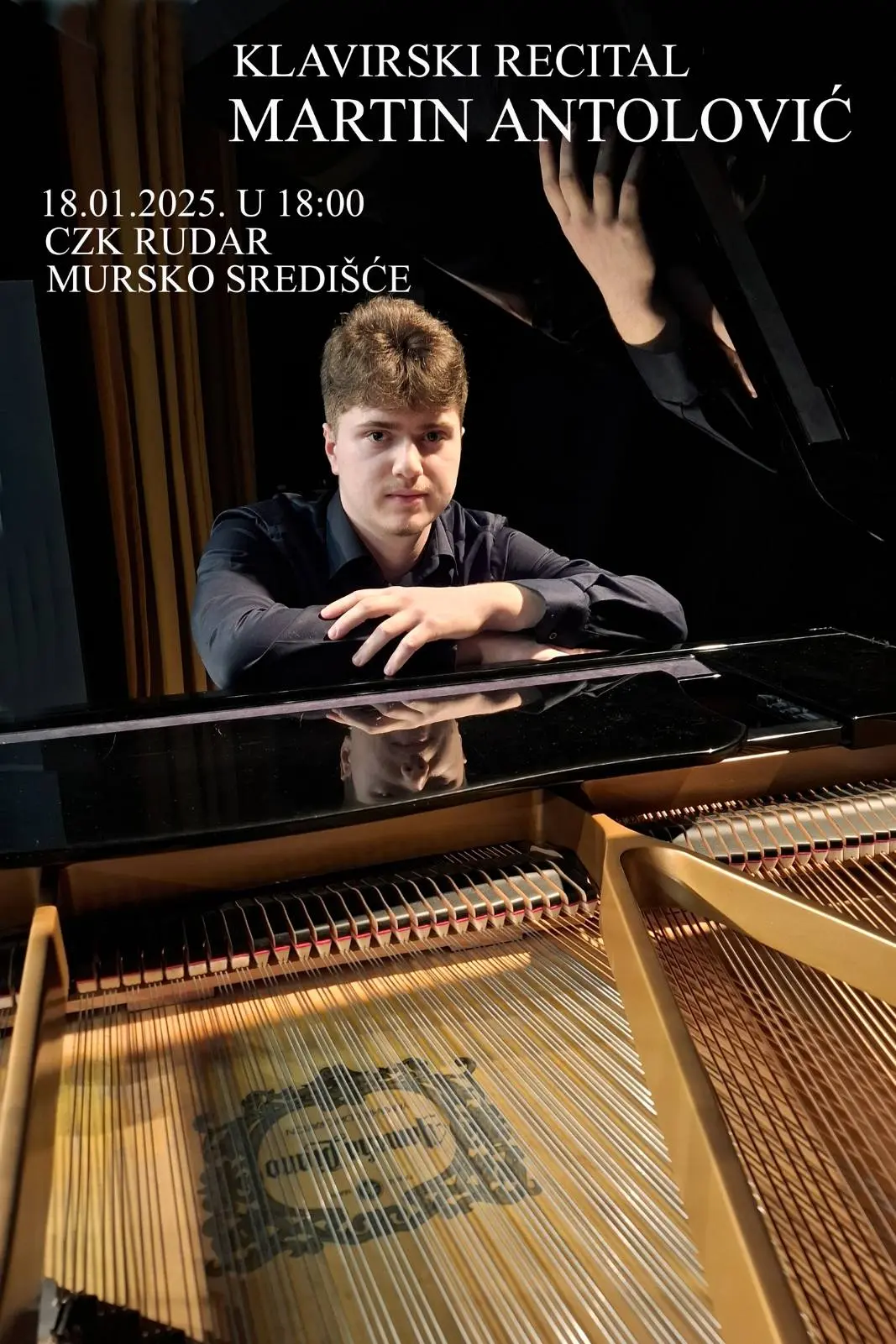 Večeras nastavljamo s redovnim programom u Centru za kulturu „Rudar“ u Murskom Središću. Otvorit će ga u 18.00 sati klavirskim recitalom talentirani mladi glazbenik Martin Antolović, koji je svoje prve glazbene korake činio u Umjetničkoj školi Miroslav Magdalenić Čakovec, koja djeluje u prostorima Centra za kulturu „Rudar“.