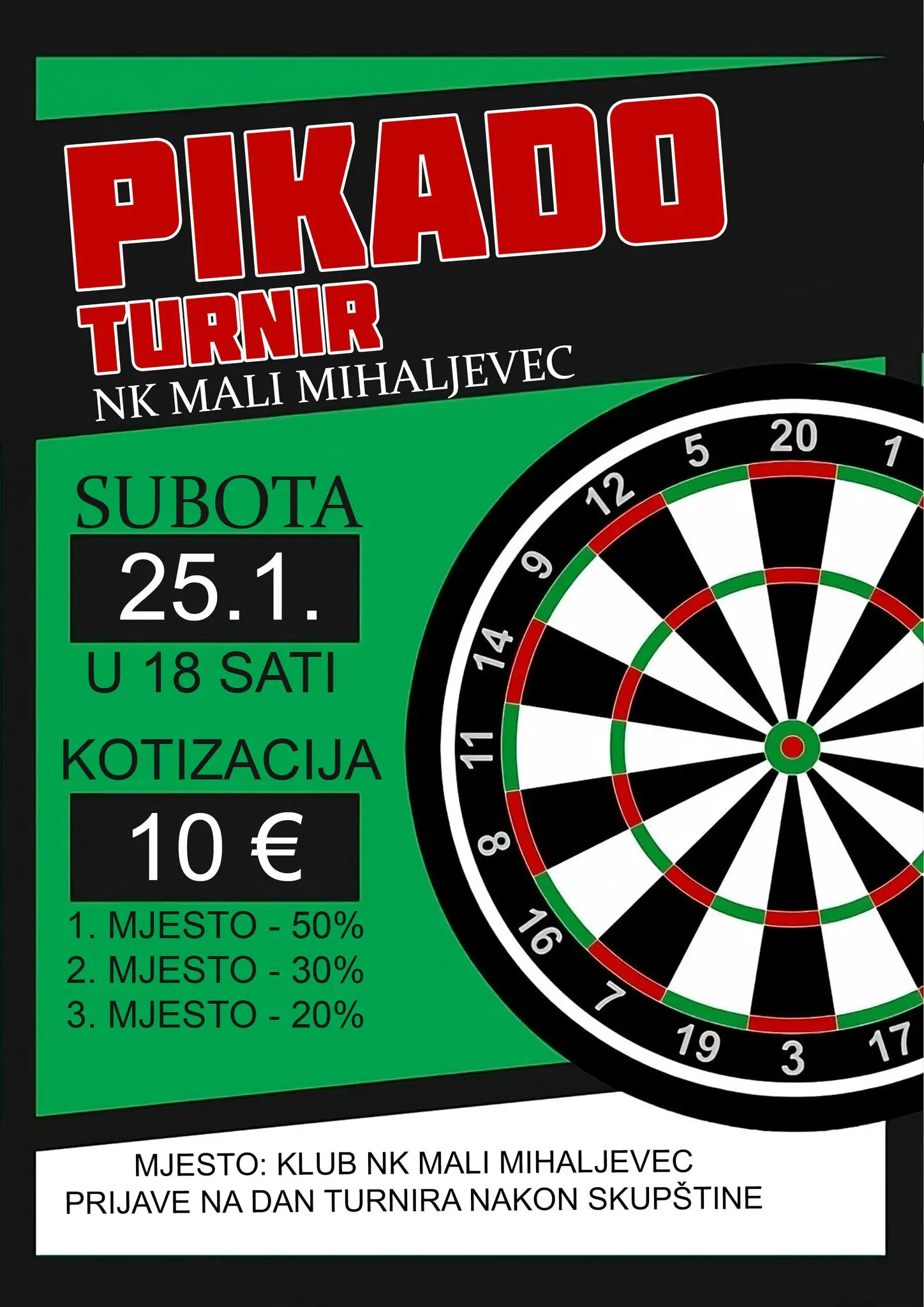 Ljubitelji pikada ove subote, 25. siječnja, imaju priliku okušati se na prvom turniru u organizaciji NK Mali Mihaljevec.