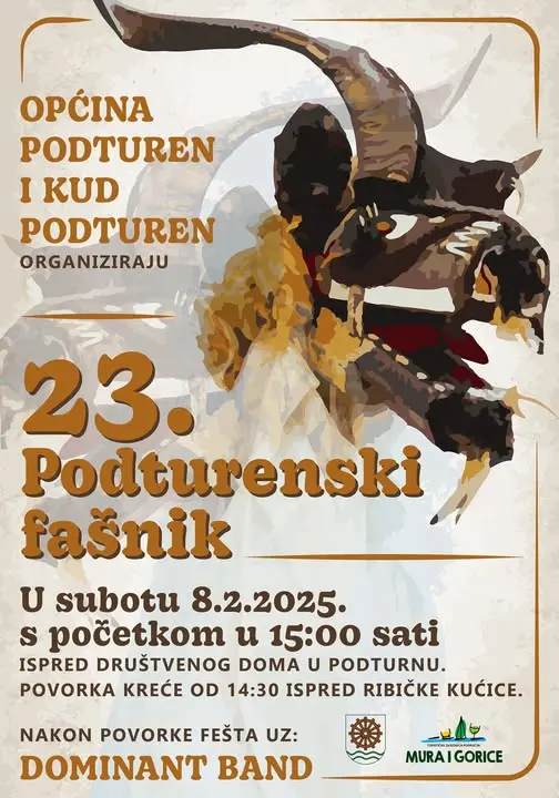 Pozivamo sve ljubitelje tradicije, glazbe i zabave da se pridruže ovom veseloj manifestaciji i uživaju u nezaboravnom iskustvu Podturenskog fašnika.