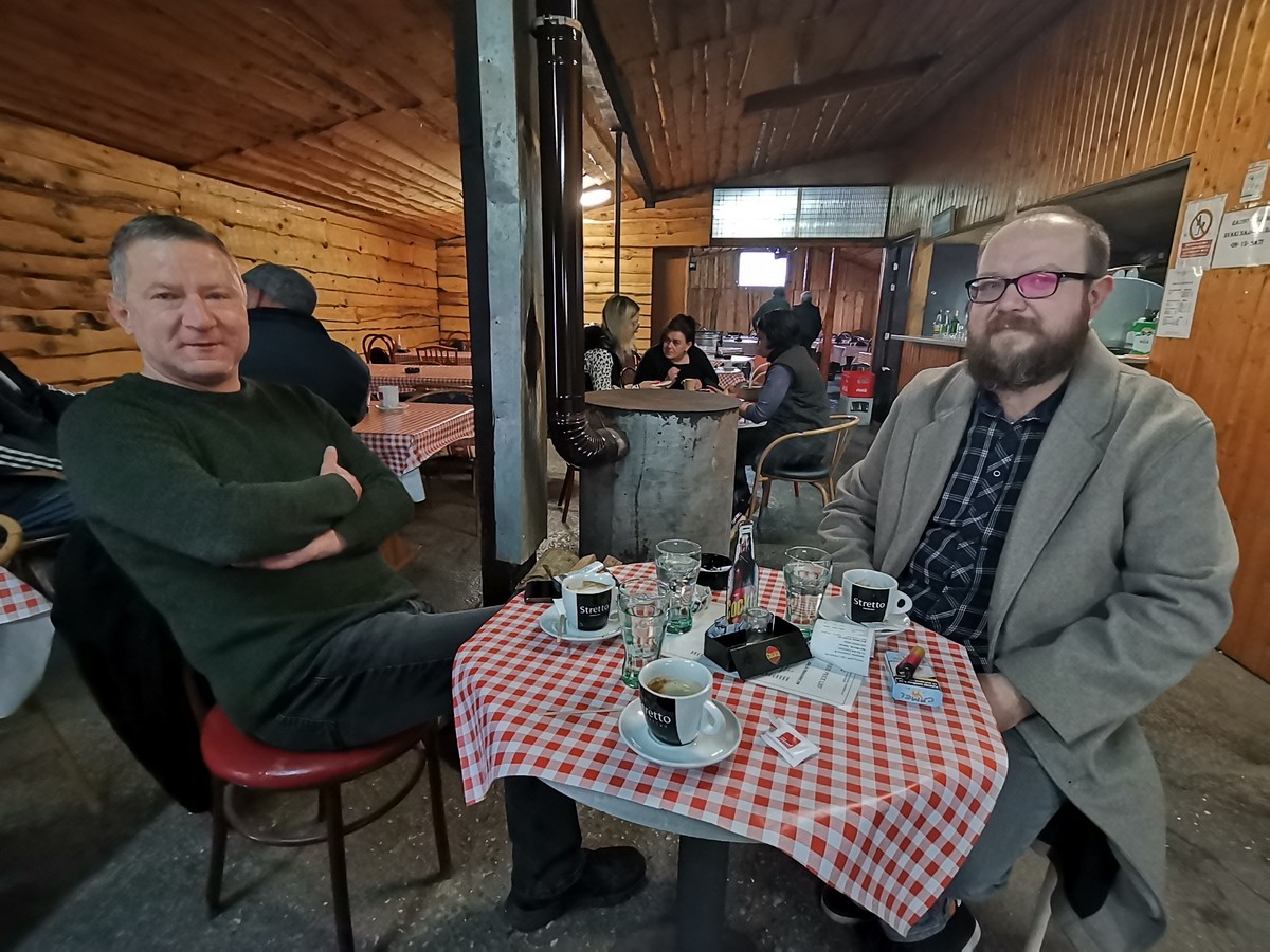 Kokošima se nisu gurali, već su na kraju ozbiljno i dostojanstveno sjeli na “kavicu i kiselu” kod Risa uživajući u opojnim mirisima kotlovine u velikom tanjuru i grijući se uz peć loženu na drva.