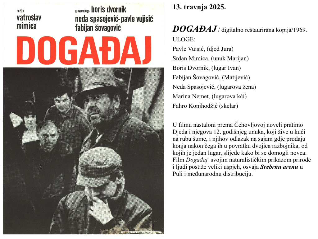 Prvi filmski vikend je pred nama – u subotu, 12. travnja prikazuje se “Seljačka buna 1573.”, a u nedjelju, 13. travnja na rasporedu je “Događaj”. Sve projekcije održavaju se u Domu kulture u Štrigovi, s početkom u 19:00 sati. Ulaz je besplatan!
