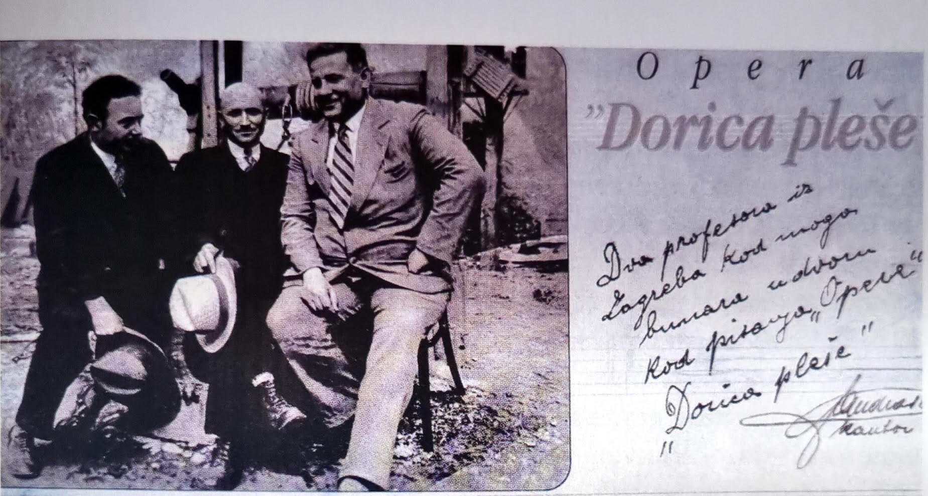 …. Naime, operu ”DORICA PLEŠE” napisao je Krsto Odak 1933. na libreto Đure Vilovića i nadahnut izvedbom 50 međimurskih napjeva međimurskog kantora Florijana Andrašeca, citiravši ih i povezavši u scensku cjelinu. Opera govori o ljubavi i ljubomori između mladog vojnika i njegove supruge u seoskom okruženju, potaknuta najvjerojatnije narodnom pjesmom „Dorica pleše“. Praizvedena je u Zagrebačkoj operi HNK 16.lipnja 1934. pod dirigentskom palicom Jakova Gotovca i u režiji Aleksandra Biničkog.