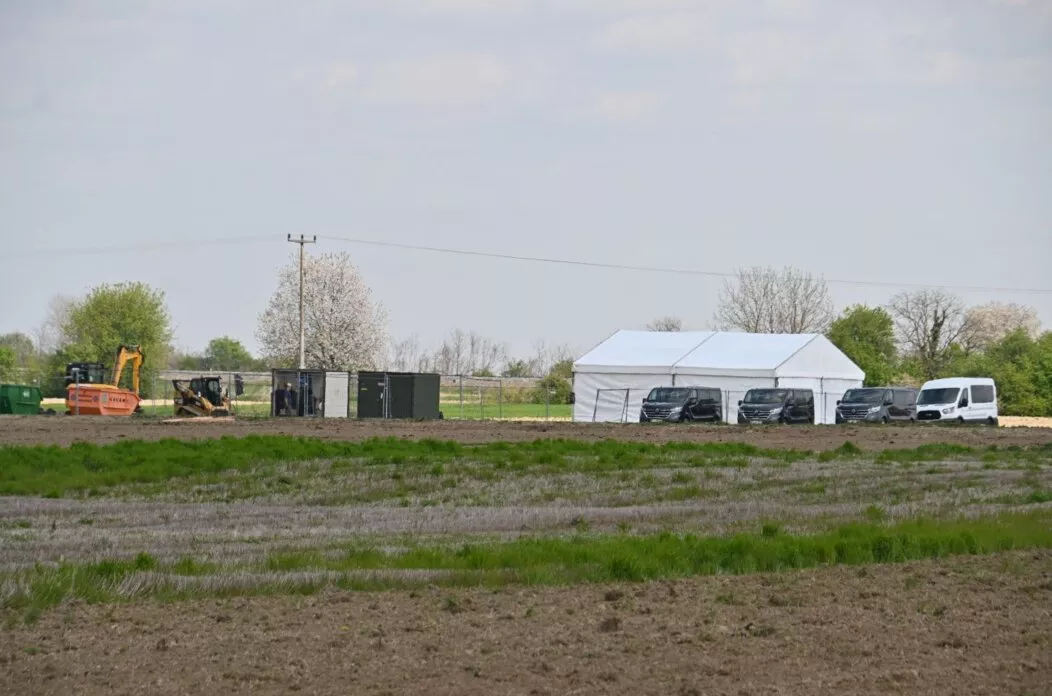 Obišli smo lokaciju 9. travnja. Stigavši iz smjera G. Kuršanca, odmah smo uočili veliki bijeli šator, građevinsku mehanizaciju i 20-ak osoba u polju.