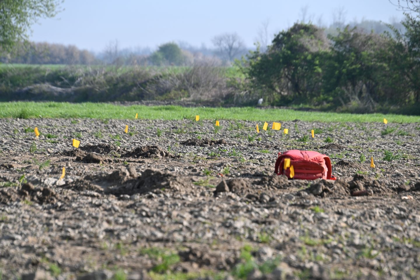 Žutim i crvenim zastavicama u izoranom polju odmah su markirali mjesto gdje se nalazi nešto veliko, metalno...