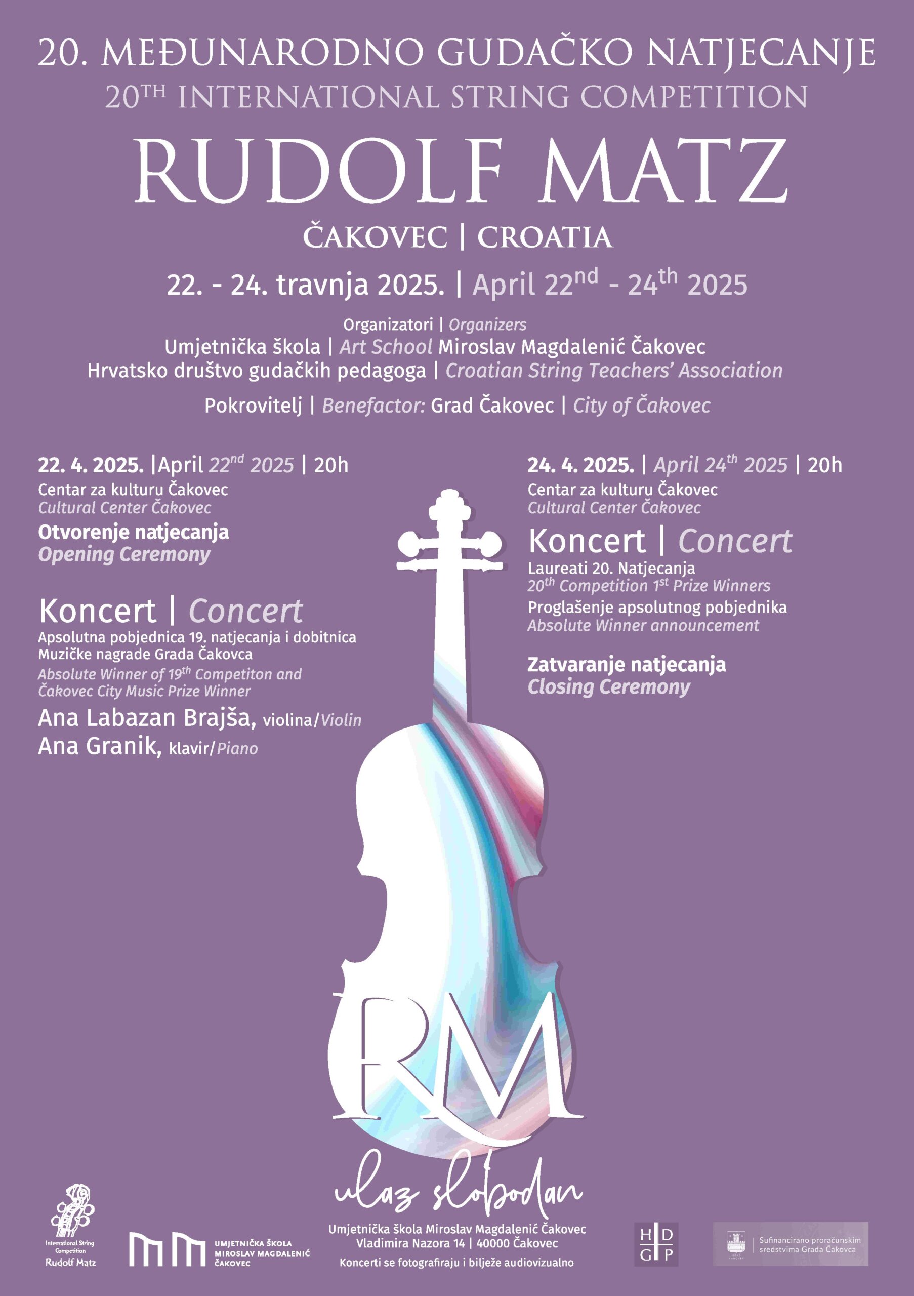 Natjecanje ove godine traje od 22. do 24. travnja. U utorak, 22. travnja u 19 sati, recital će održati Ana Labazan Brajša, koja je 2023. godine na 19. Međunarodnom gudačkom natjecanju „Rudolf Matz“ primila Nagradu Grada Čakovca i bila proglašena apsolutnom pobjednicom natjecanja.