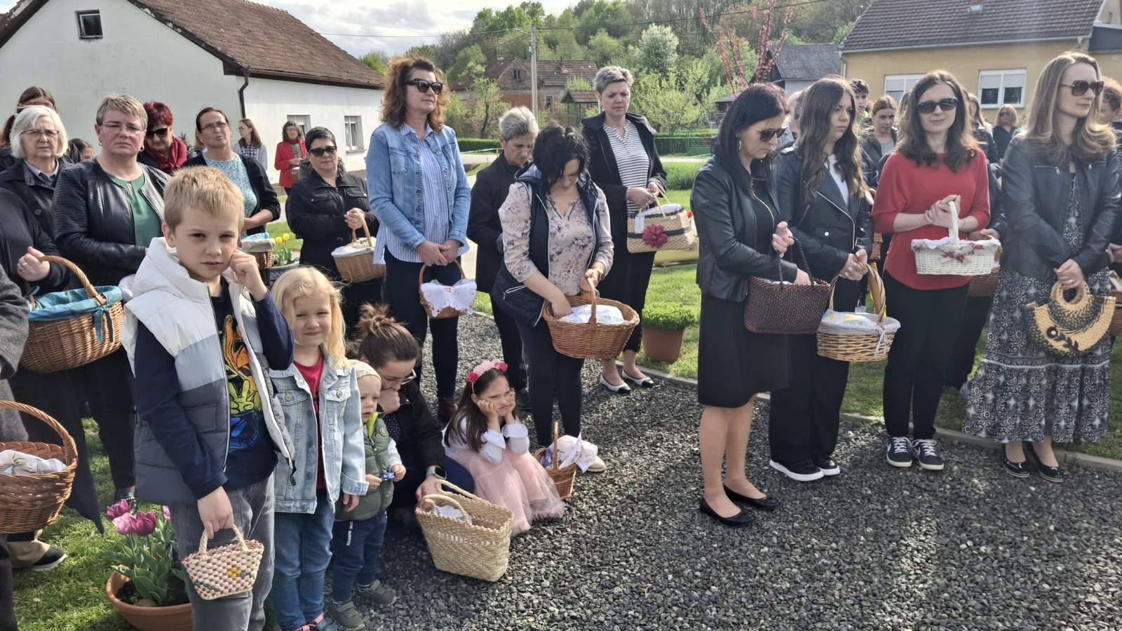 U košaricama koje su vjernici brižno pripremili nalazili su se simboli uskrsnog blagovanja – jaja, kruh, hren, šunka i slastice, a sve je bilo obavijeno tihom molitvom i vedrinom koja dolazi s vjerom u Uskrsnuće.