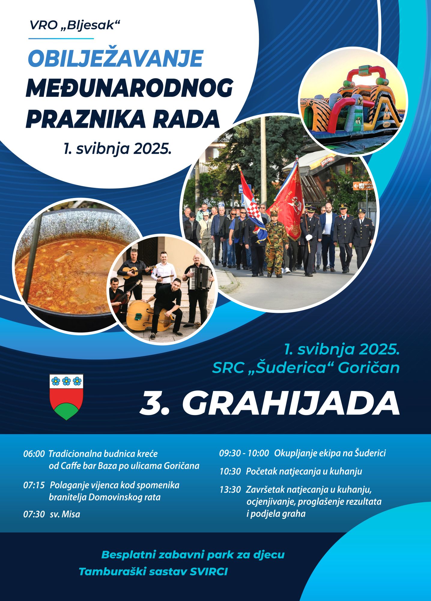 Nakon budnice, u organizaciji Udruge dragovoljaca i veterane domovinskog rata – PMŽ Goričan i Općine Goričan, na Šuderici će se održati 3. „Grahijada“, natjecanje u kuhanju graha.