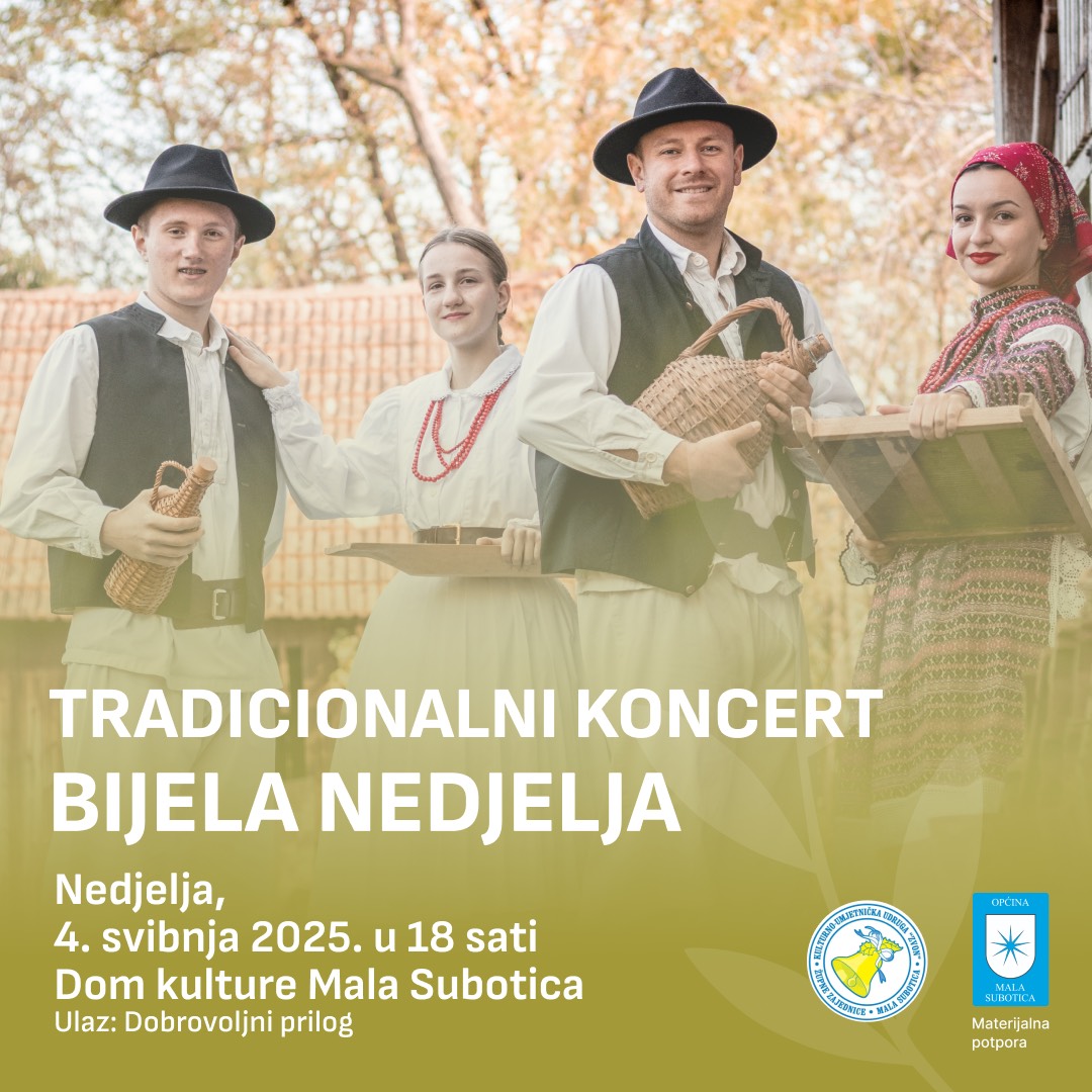 U nedjelju 4. svibnja u Domu kulture Mala Subotica održava se tradicionalni koncert "Bijela nedjelja". Posjetitelje očekuje bogat folklorni program i duh međimurske baštine.