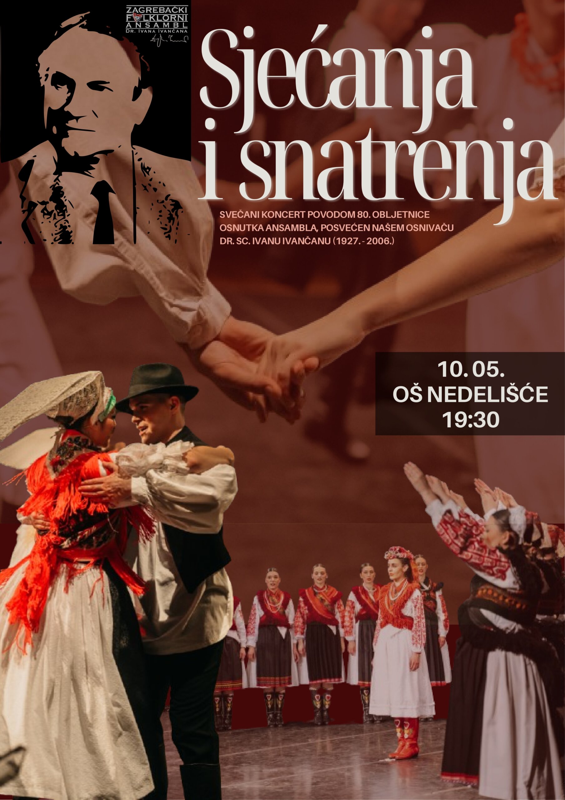 U organizaciji Kulturno umjetničke udruge Seljačka sloga Nedelišće, u subotu 10. svibnja 2025. godine, u Sportskoj dvorani OŠ Nedelišće s početkom u 19:30 sati održat će se svečani koncert Zagrebačkog folklornog ansambla Dr. Ivan Ivančan pod nazivom “Sjećanja i snatrenja” povodom 80. obljetnice osnutka Ansambla.