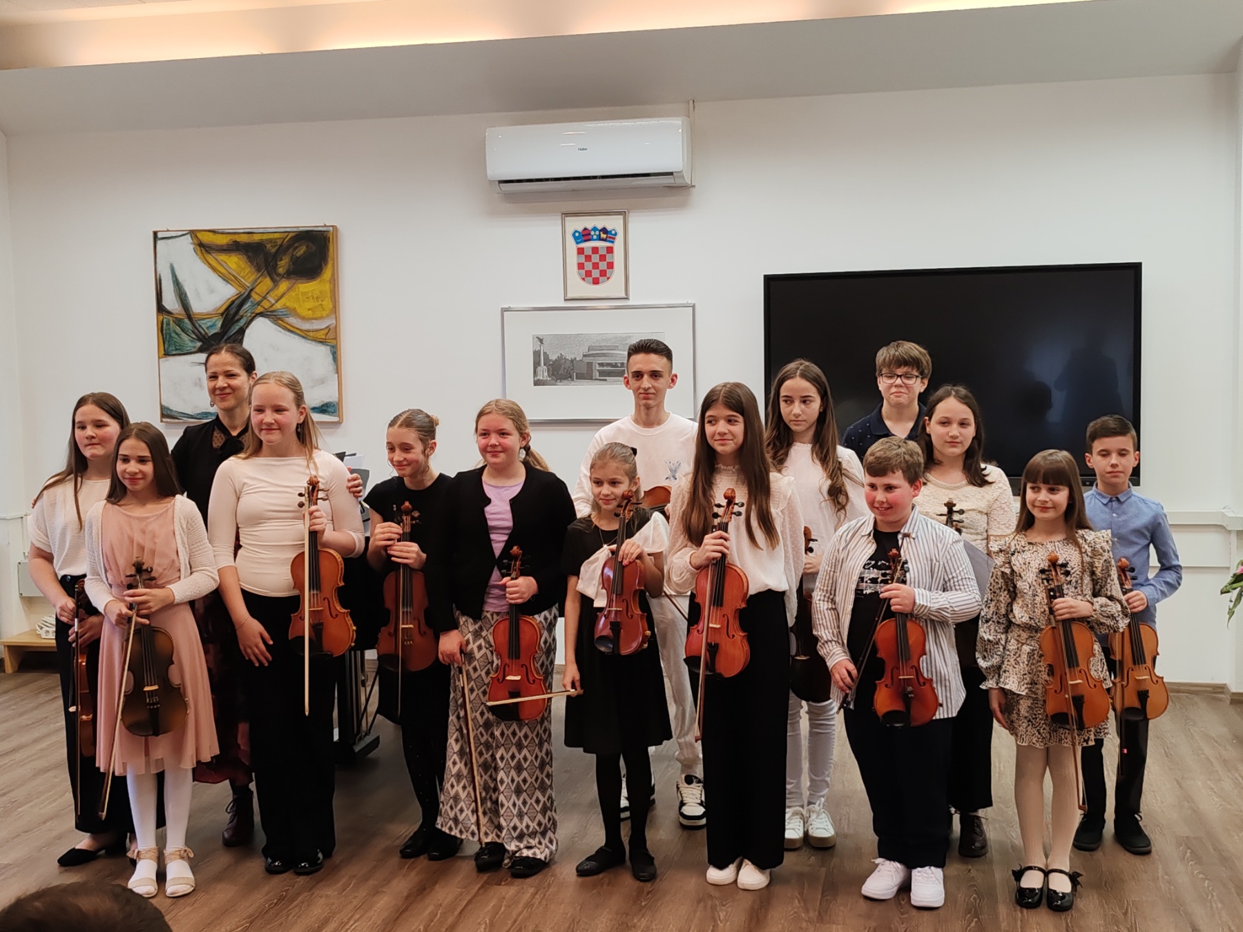Istog dana održana je i produkcija učenika Odjela violine u klasi profesorice Dorotee Božić Palašek. Učenici su se predstavili raznolikim repertoarom koji je dočarao njihove tehničke i interpretativne sposobnosti. Klavirsku pratnju, koja je dodatno obogatila izvedbe, izveo je prof. Daniel Mario Novak. Publika je s velikim zanimanjem pratila nastupe, a svaka izvedba bila je popraćena iskrenim pljeskom podrške.