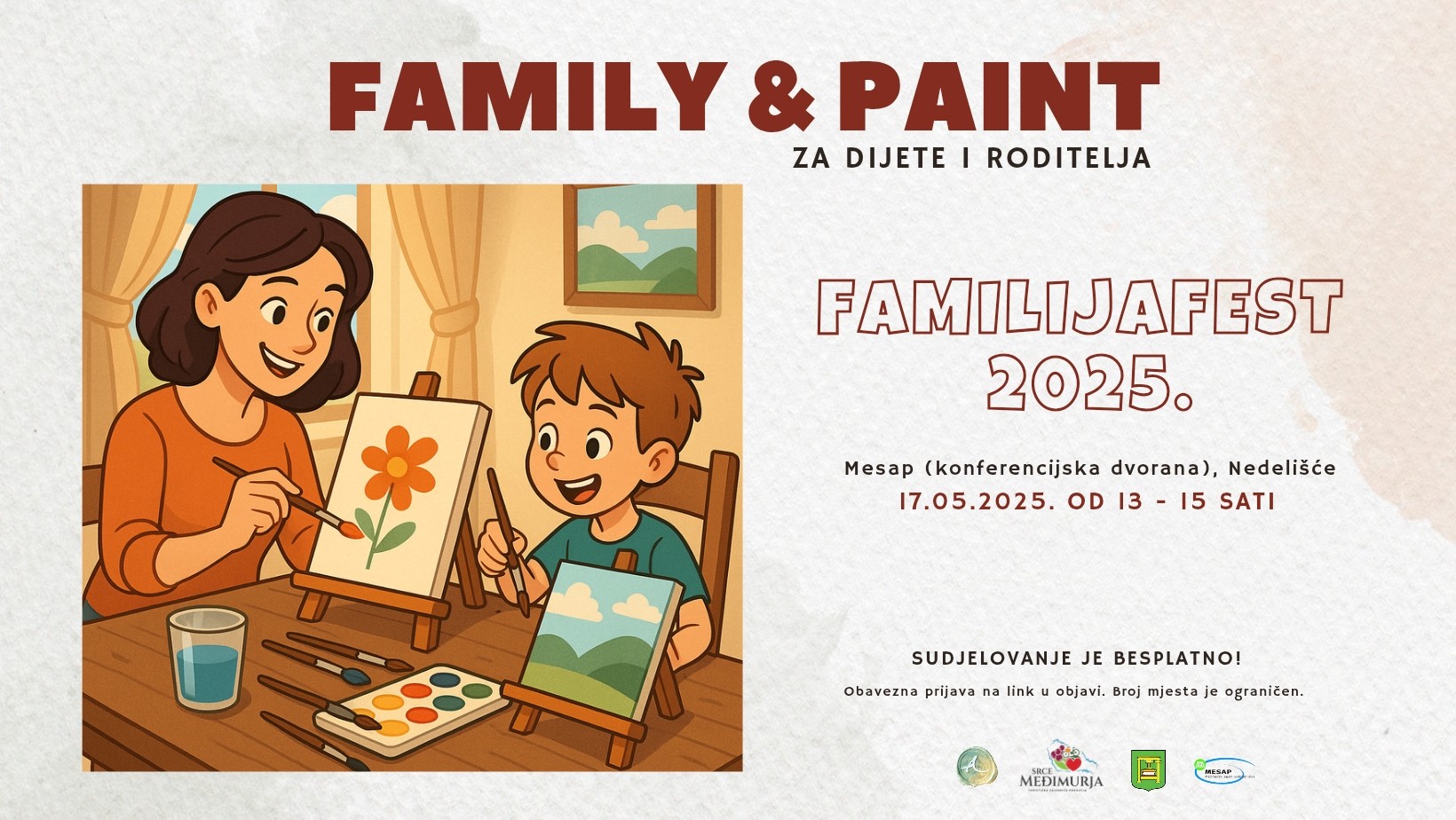 U sklopu Familija Festa ove subote, 17. svibnja, pridružite nam se na posebnoj radionici Family & Paint – jedinstvenom iskustvu zajedničkog slikanja za jednog roditelja i dijete!