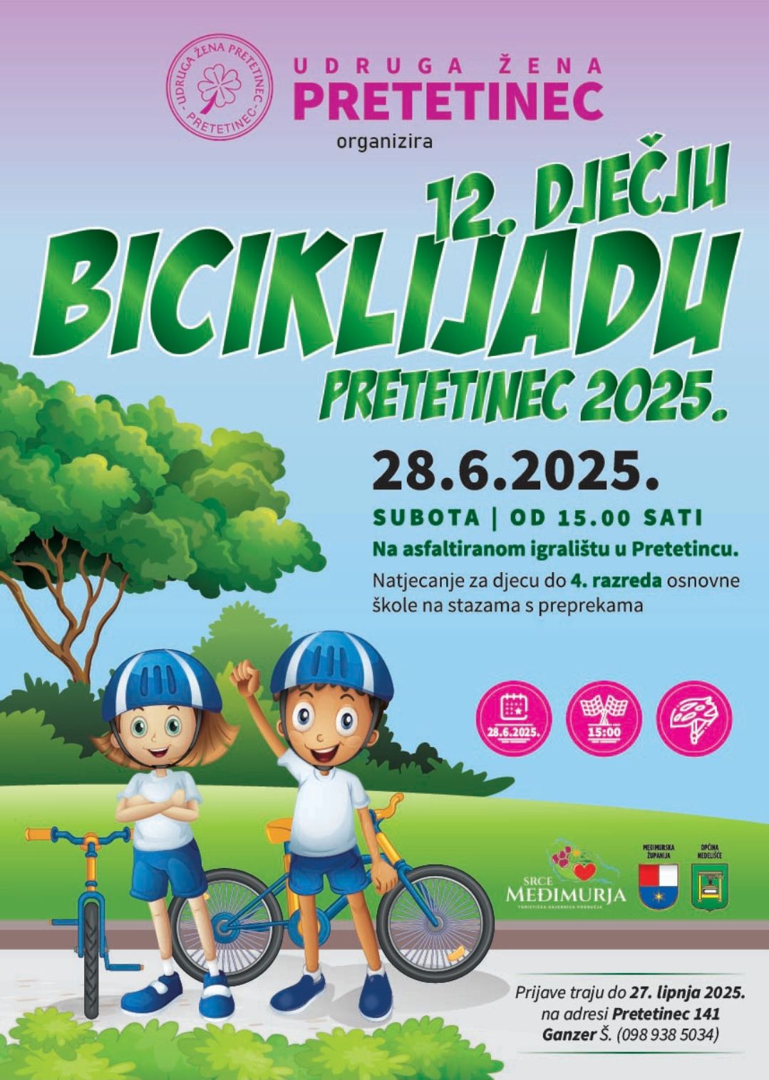 Udruga žena Pretetinec s ponosom najavljuje 12. Dječju biciklijadu, koja će se održati u subotu, 28. lipnja 2025., s početkom u 15:00 sati.
