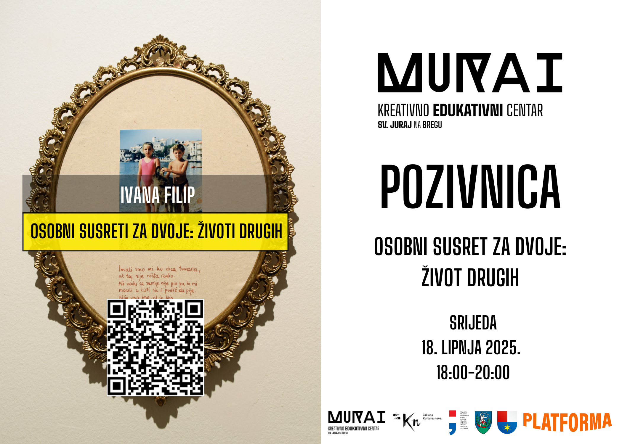 U srijedu, 18. lipnja 2025. godine, s početkom u 18:00 sati, Kulturno-edukativni centar Murai u Pleškovcu bit će domaćin neobičnom umjetničkom događaju – otvorenju izložbe “Osobni susreti za dvoje: Životi Drugih umjetnice Ivane Filip”.