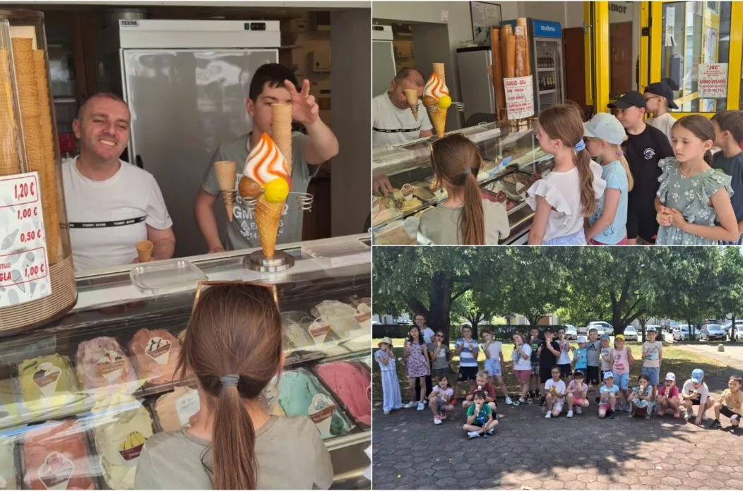 U četvrtak, 13. lipnja, dok su se brojni osnovnoškolci već lagano pozdravljali sa školskim klupama i razmišljali o nadolazećim ljetovanjima, učenici 1. b razreda i njihova učiteljica Dunja Mikulaj prošetali su do obližnje slastičarnice na Jugu u Čakovcu, gdje su ih dočekale kuglice omiljenih okusa – čokolada, jagoda, vanilija i mnoge druge.