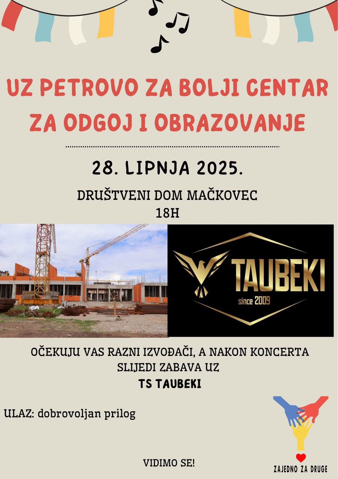 Nakon koncerta, druženje se nastavlja ispred Društvenog doma u Mačkovcu, gdje će za glazbenu zabavu do dugo u noć biti zadužen popularni Tamburaški sastav Taubeki. Bit će to idealna prilika za sve generacije da uživaju u glazbi, druženju i dobroj atmosferi, a sve s humanitarnim predznakom.
