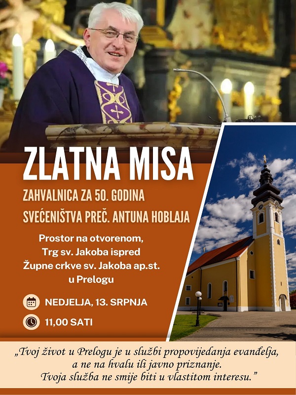 Ove nedjelje, župa sv. Jakoba u Prelogu priprema se za poseban događaj dok će prečasni Antun Hoblaj svečano proslaviti svoju Zlatnu misu, simbolizirajući pet desetljeća predanog služenja Bogu i ljudima.
