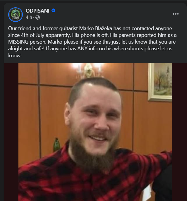 Marko je bio poznat kao gitarist u bendu Odpisani, no više ne svira aktivno s njima. Upravo su članovi tog benda prvi putem društvenih mreža objavili vijest da im se Marko ne javlja i da ga traže.
