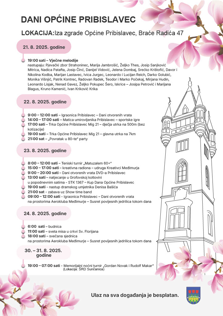 Sva događanja održat će se iza zgrade Općine Pribislavec, na adresi Braće Radića 47.