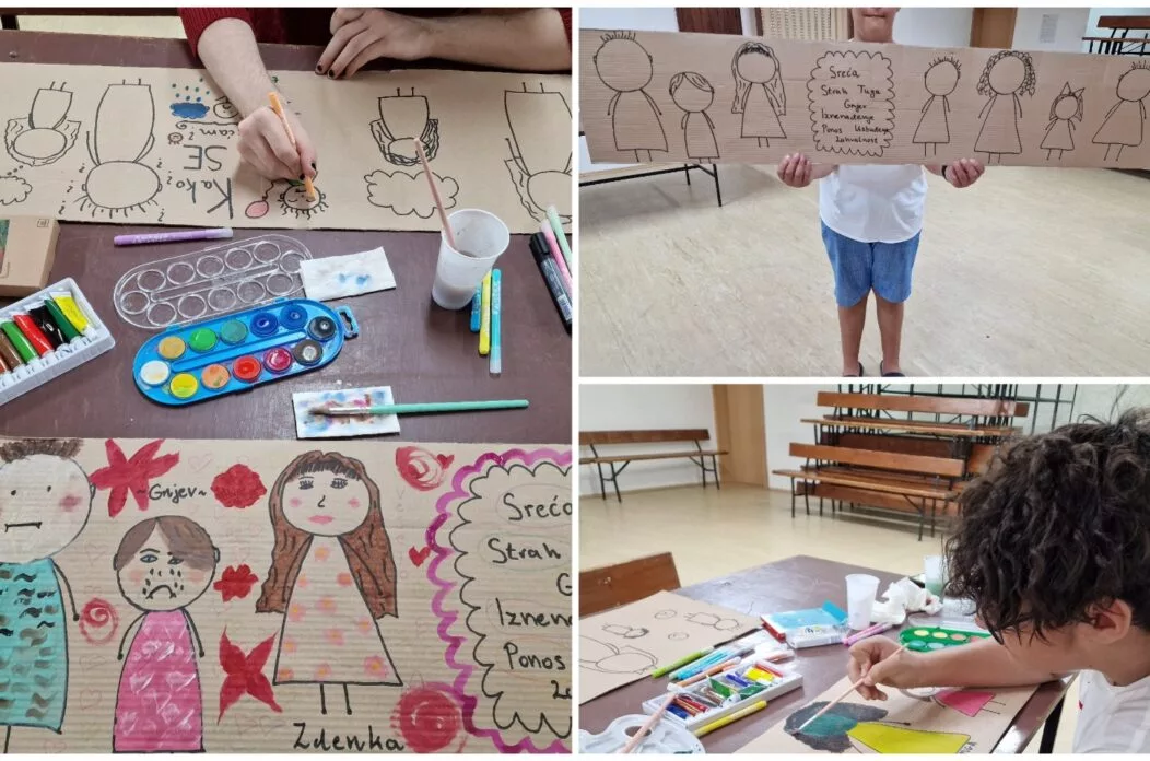 Tijekom radionice djeca su kroz igru, razgovor i likovno izražavanje istraživala svijet emocija. Na velikim panoima nastajali su šareni crteži, a uz njih i iskrene poruke poput: sreća, tuga, ponos, zahvalnost, „Volim prirodu“ ili pak simpatično priznanje „Sviđa mi se Luka“. Svaki rad bio je odraz njihove mašte, ali i način da pokažu kako doživljavaju i prepoznaju vlastite osjećaje.