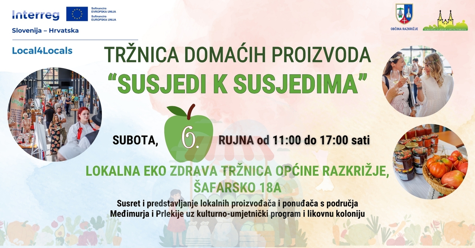 Sutra u Razkrižju očekuje vas tržnica domaćih proizvoda, kulturni program i likovna kolonija u sklopu projekta Local4Locals. Dođite i budite dio prekograničnog druženja!