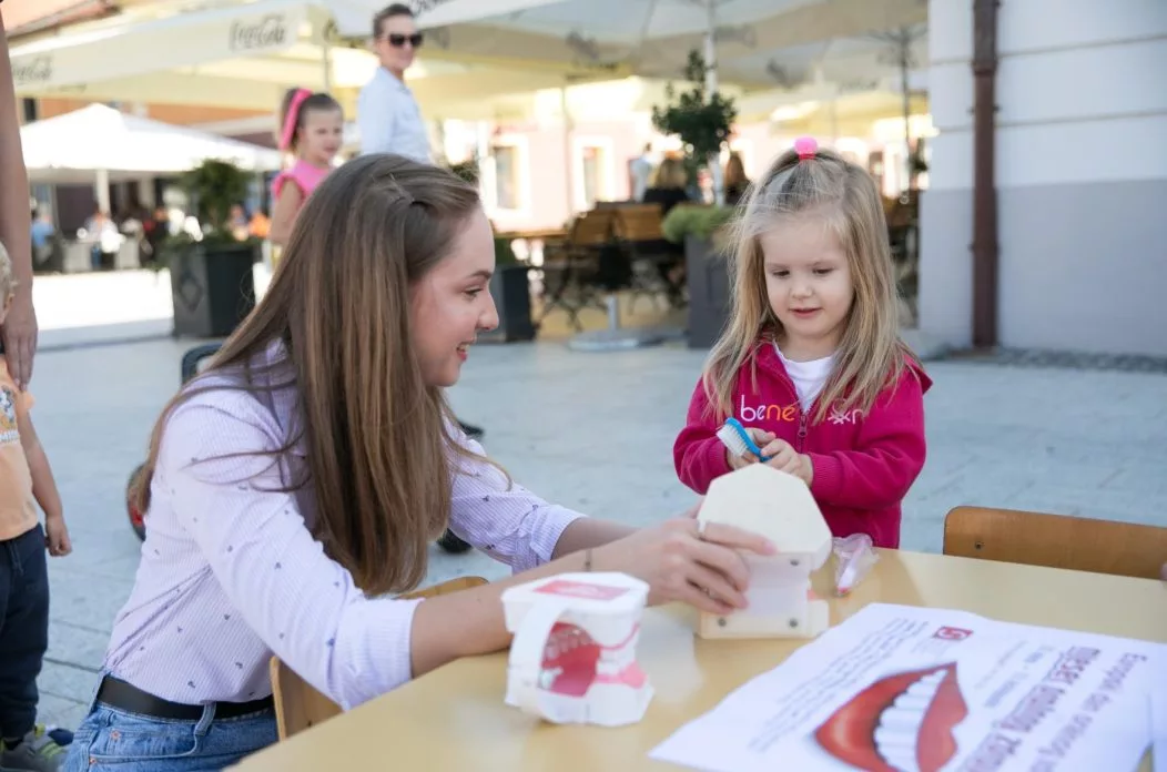 Na štandu će se dijeliti savjeti, edukativni leci, zubne paste i četkice te zdravi međuobrok – jabuke , a u radionici će djeca vježbati pravilno čišćenje zubi.