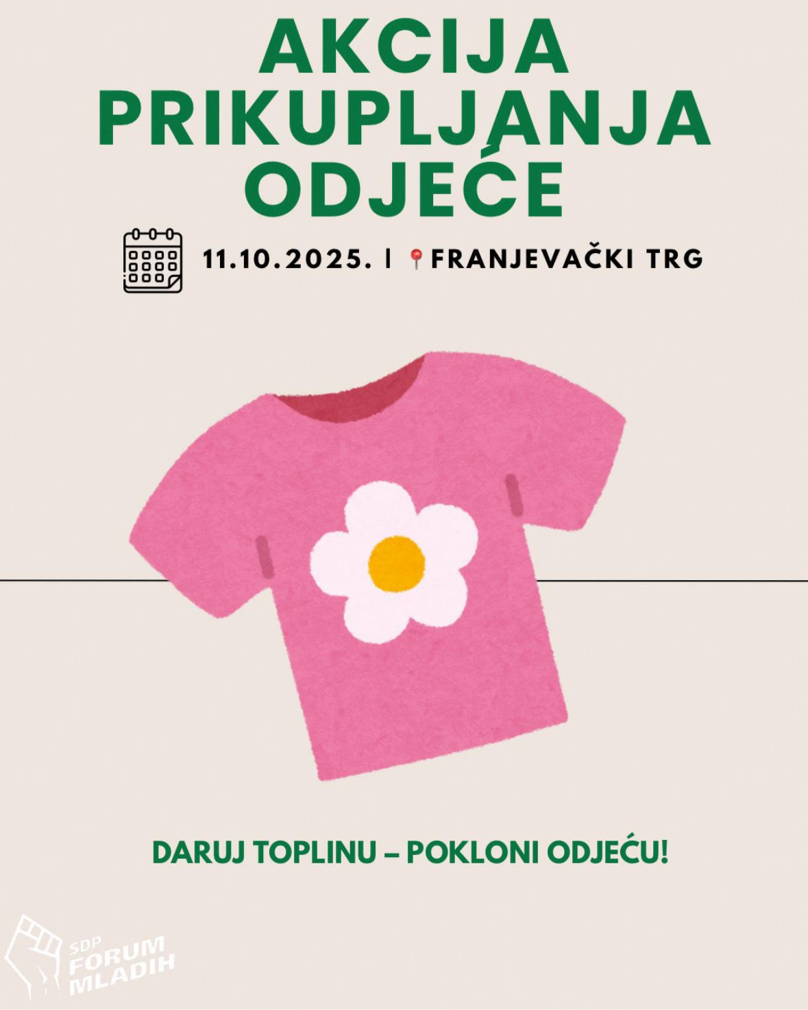 Povodom Dana beskućnika, Forum mladih SDP-a Čakovec organizira humanitarnu akciju pod nazivom “Daruj toplinu – pokloni odjeću”, kojom žele potaknuti građane na solidarnost i pomaganje onima kojima je to najpotrebnije.