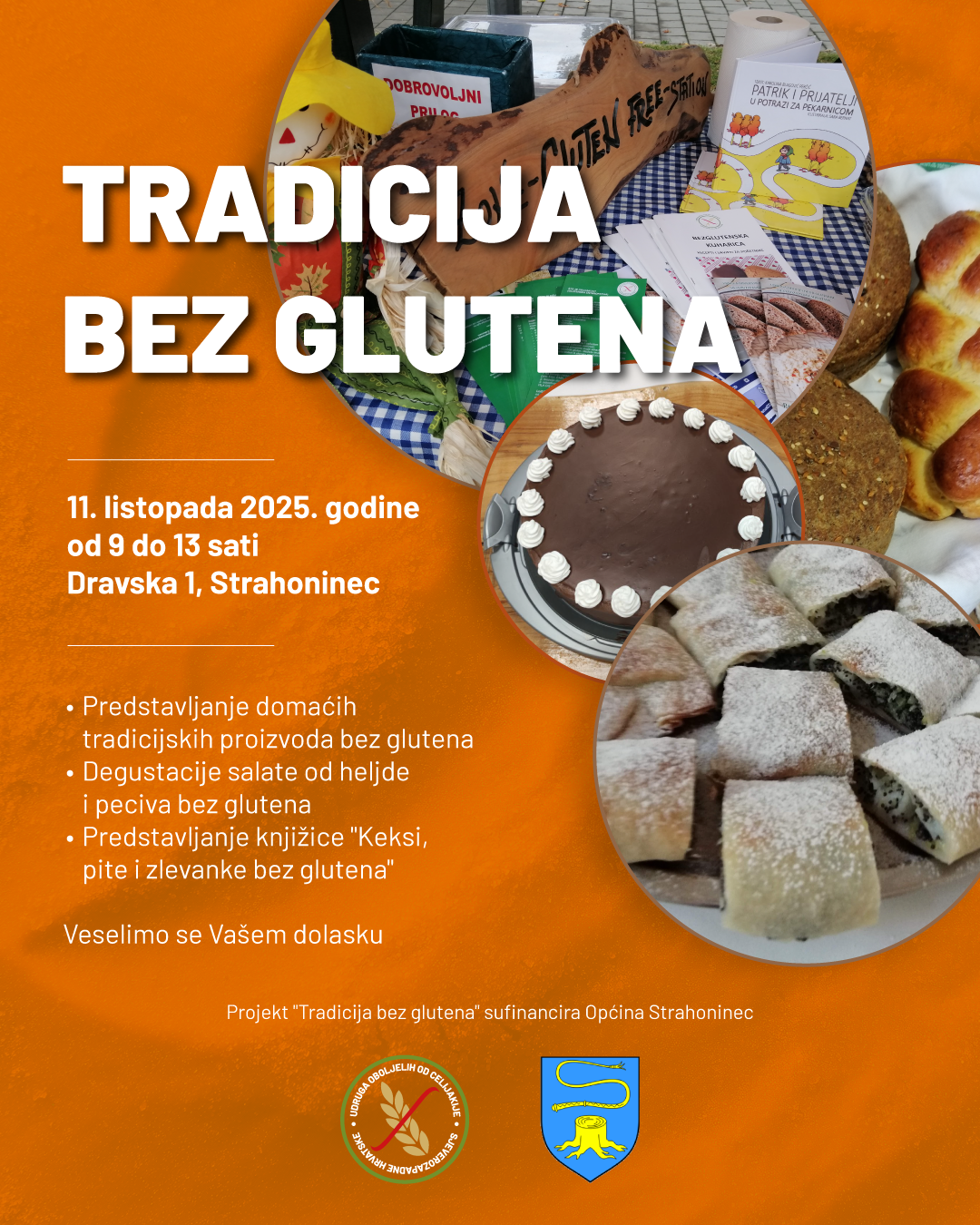 Udruga oboljelih od celijakije SZ Hrvatske 11. listopada u Strahonincu organizira manifestaciju “Tradicija bez glutena” s degustacijama, druženjem i predstavljanjem nove knjižice recepata
