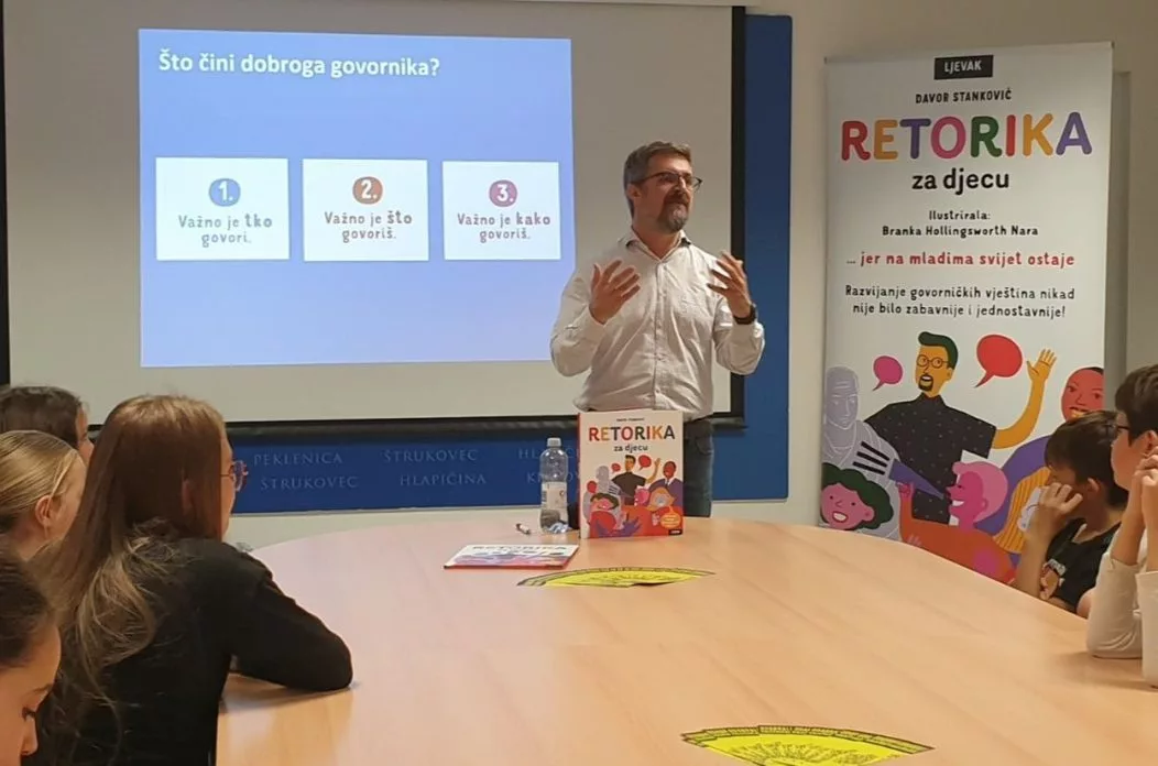 Radionicu pod nazivom „Retorika za djecu“ vodio je profesor fonetike i engleskog jezika i književnosti, učitelj govora i govorništva te ujedno i autor istoimenog priručnika za djecu u izdanju Naklade Ljevak, Davor Stanković.
