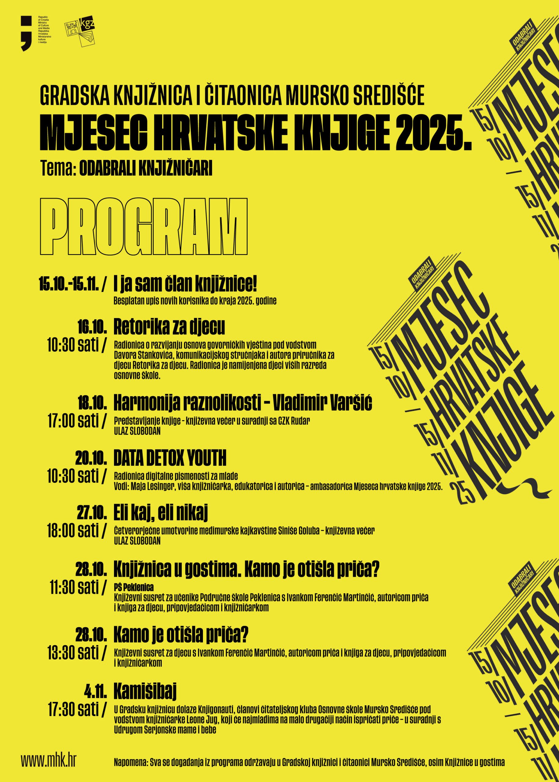 Mjesec hrvatske knjige nastavlja se bogatim i raznolikim programom koji spaja književnost, pripovijedanje, digitalnu pismenost, zavičaj i ljude.