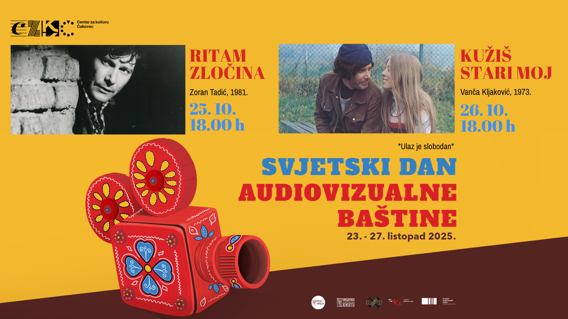 Program provodi Kino mreža u suradnji s Hrvatskim državnim arhivom – Hrvatskom kinotekom. U Centru za kulturu Čakovec prikazat ćemo dva filma, „KUŽIŠ, STARI MOJ“ i „RITAM ZLOČINA“. Ulaz na projekcije je SLOBODAN.