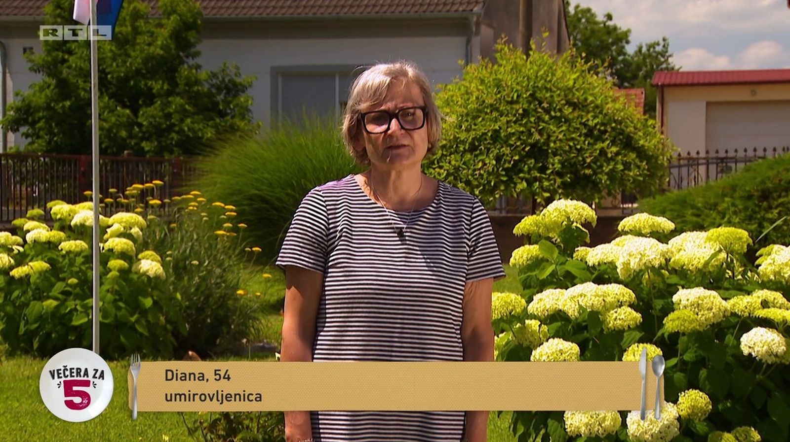 Diana Gustak Svečak velika je obožavateljica ‘Večere za 5’ i prati emisiju od samih početaka. Inače živi u Austriji, po struci je trgovkinja, a sada je u zasluženoj mirovini. Rado provodi vrijeme u kuhinji, voli kuhati i raditi kolače, a voli i čitati, štrikati i pratiti sport, točnije, rukomet i nogomet, jer se tim sportovima bave njeni unuci. Omiljena jela su joj domaća, poput primjerice sarme.