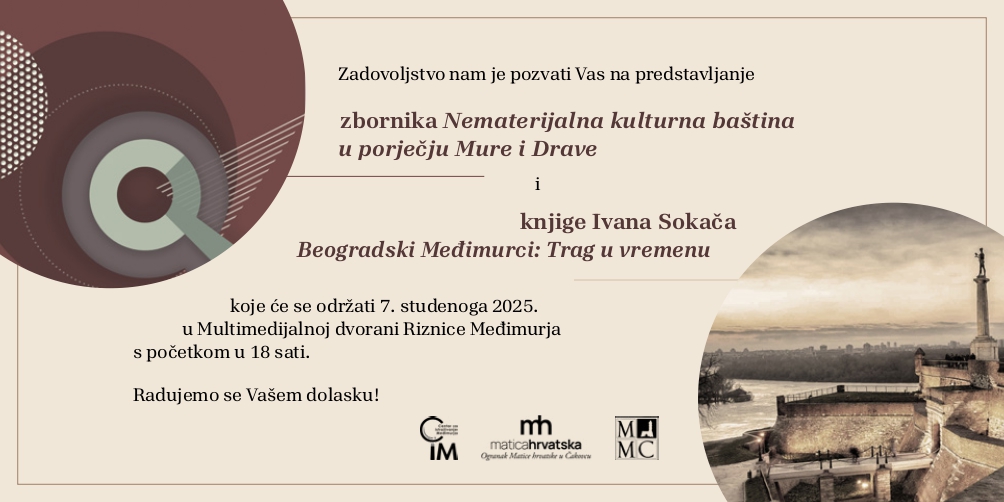 U sklopu međunarodnoga znanstvenog skupa „Migracije, prijenosi i utjecaji“ koji će se od 6. do 8. studenoga organizirati Centar za istraživanje Međimurja, Ogranak Matice hrvatske u Čakovcu i Institut za istraživanje migracija iz Zagreba, u petak, 7. studenoga, u multimedijalnoj dvorani Riznice Međimurja u Čakovcu s početkom u 18:00 sati bit će predstavljena i dva nova vrijedna izdanja.