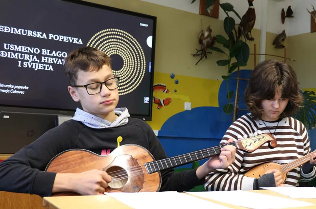 Učenici Leon Kuzma i Eva Novak na tamburama su odsvirali dvije međimurske popevke.