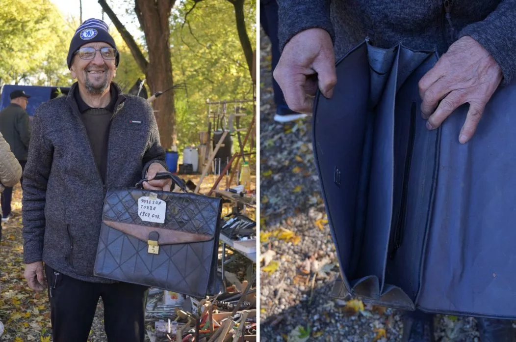 Na čakovečkom sajmu srijedom Đuro Kolac iz Palinovca izložio je staru kožnu poreznu torbu iz 1969. godine.