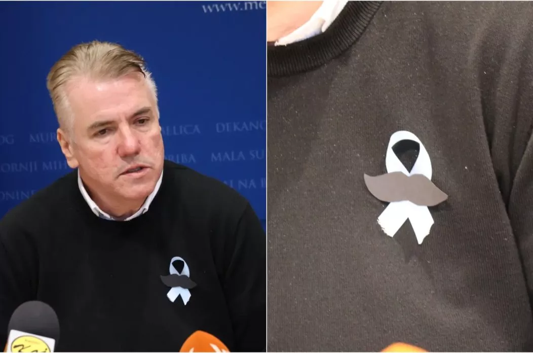 Na današnjoj konferenciji za novinare u Međimurskoj županiji, održanoj povodom potpisivanja ugovora o uređenju Učeničkog doma, Srnec je privukao pažnju zanimljivim detaljem – brošem s plavom vrpcom i crnim brkovima.